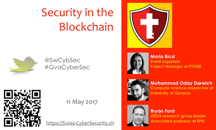 Discover the Blockchain from the security point of view. The introduction will be given by Oday Darwich, researcher and teacher assistant at Geneva University, about Blockchain and Ethereum. We will dive deeper in the Blockchain Security with Prof. Bryan Ford, who leads the Decentralized/Distributed Systems (DEDIS) research group at the Swiss Federal Institute of Technology in Lausanne (EPFL).