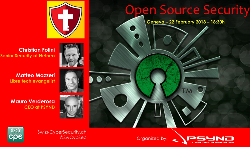 Christian Folini, Matteo Mazzeri and Mauro Verderosa will present at the Swiss-CyberSecurity event Open Source Security.