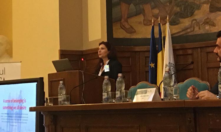 Mária presents about how to build a Cybersecurity community at the Romanian parlament.